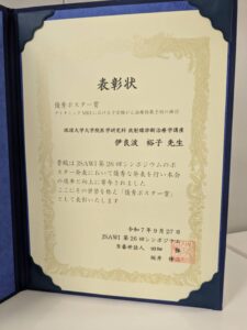 News お知らせ 琉球大学大学院医学研究科 放射線診断治療学講座 琉球大学病院放射線部 > お知らせ > 伊良波裕子先生が JSAWI2025 優秀ポスター賞を受賞しました 2025.10.01 伊良波裕子先生が JSAWI2025 優秀ポスター賞を受賞しました 伊良波裕子, 湯本一由, 國吉真綾, 西江昭弘: ダイナミックMRIにおける子宮頸がん治療効果予測の検討 JSAWI2025. 淡路市. 2025.9.26-27 « 伊藤純二先生が 第14回緩和IVR研究会 で発表しました 中村雅人先生が 第333回九州神経放射線研究会 ベストプレゼンテーター賞を受賞しました » お知らせ一覧へ Category お知らせ Archive 2025年10月 2025年9月 2025年8月 2025年7月 2025年6月 2025年5月 2025年4月 2025年2月 2025年1月 2024年12月 2024年10月 2024年9月 2024年8月 2024年7月 2024年6月 2024年5月 2024年4月 2024年3月 2024年2月 2023年12月 2023年11月 2023年9月 2023年8月 2023年6月 2023年5月 2023年4月 2023年3月 2023年1月 2022年12月 2022年11月 2022年4月